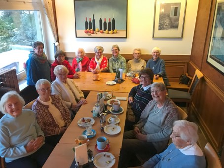 So erfolgte die Spendenübergabe diesmal in großer Runde im Cafe Gräler in Burgaltendorf. Die beeindruckende Damenrunde zeigt, wie man sich auch im hohen Alter mit Gymnastik fit halten kann.
